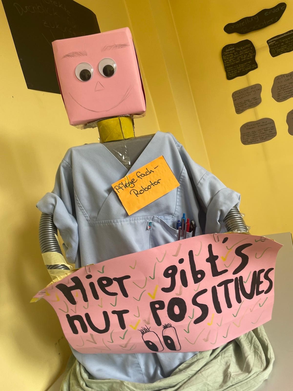 In der Zukunftswerkstatt Pflege beschäftigten sich unsere Azubis neben den Themen KI in der Pflege, Dokumentation und Personalmangel mit dem Thema Freiheitsentziehende Maßnahmen (FEM). Unter FEM versteht man alle Maßnahmen, die die Bewegungsfreiheit einer Person gegen ihren Willen einschränken und sie daran hindern, sich frei zu bewegen oder ihren Aufenthaltsort zu verlassen. In der Zukunftswerkstatt setzten sich die Auszubildenden mit dem Status Quo auseinander und entwarfen Zukunftsszenarien: