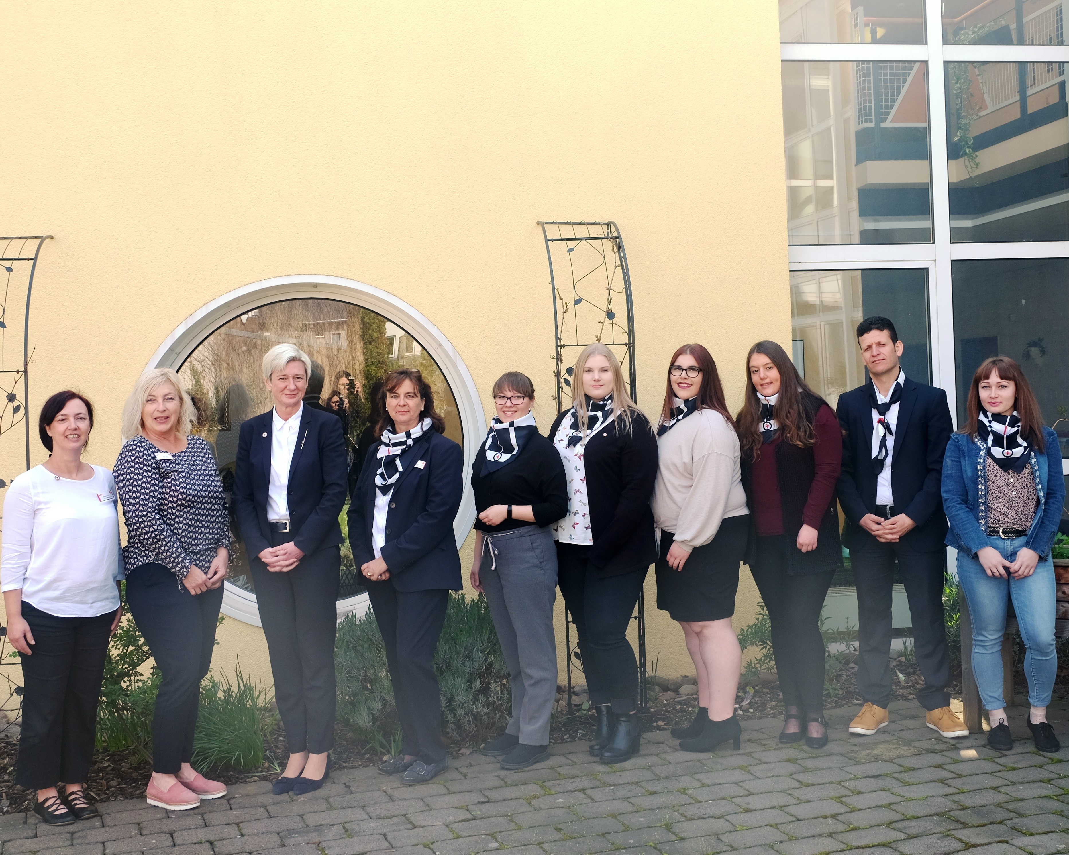 Die Auszubildenden in der Altenpflege aus den DRK Gästehäusern für Wohnen in der Pflege sowie Kurzzeitpflege feierten ihre bestandene Probezeit im DRK Gästehaus in Dillingen. Traditionsgemäß überreichte unsere Oberin Heike Wagner den Auszubildenden eine Brosche, die ihre Zugehörigkeit zur Schwesternschaft symbolisiert. Wir freuen uns und sind stolz auf unsere "Zukünftigen"!